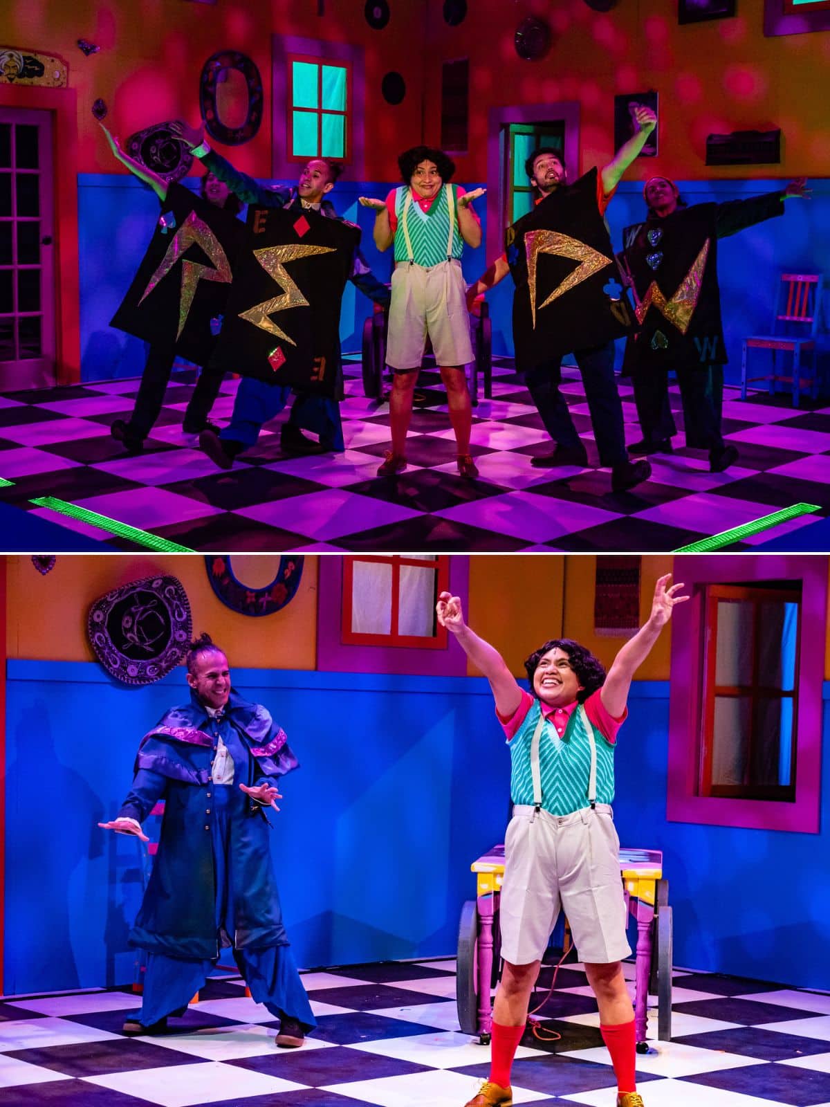 One especially clever moment has the cast wearing costumes that spell out the word WEIRD, reflecting Héctor’s insecurities — then shifting letters to form WIRED, signaling his newfound spark. Enter a flamboyant magician (dazzlingly costumed by Rukiya Henry-Fields in a purple cape) who tells Héctor that the light he’s searching for is already inside him. Still, Héctor must learn that lesson the hard way. A botched attempt to connect car battery cables turns him into a conduit for electricity — literally wired — his emotions triggering blackouts whenever he’s overwhelmed.