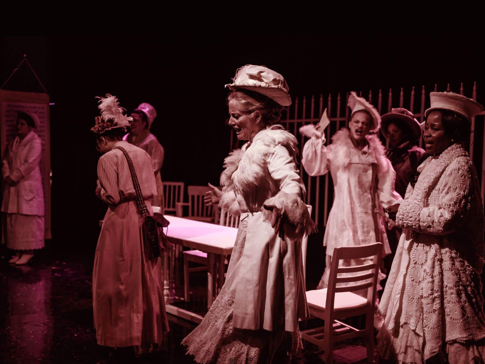 It’s My Party! opens on an empty table, center stage, filled only with the disembodied voices of congressmen. “Yay.” “Nay.” It’s 1919, and the suffragists listen on the sidelines with bated breath as Congress votes on the 19th Amendment. On one side, the women of NAWSA; on the other, the women of the NWP. The House passes the Susan B. Anthony Amendment, and the respective attitudes of the actresses reveal where the pendulum swings in this retelling.
