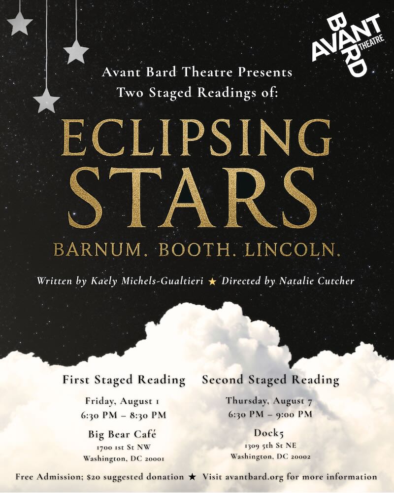 This summer, Avant Bard Theatre invites audiences behind the curtain to witness the creation of a bold new work — Eclipsing Stars, written by playwright and professional trapeze artist Kaely Michels-Gualtieri, whose unique perspective shapes this new play’s blend of circus, Shakespeare, and American history.