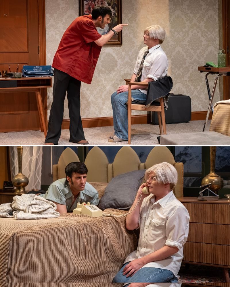 Warhol is in his room at the Tehran Hilton, waiting to hear from the Shah’s wife about a commission to paint her portrait. But, in the words of Brent Askari, the playwright pulling the strings, Warhol admits that he is really waiting “for something that could have happened … or would happen … or will happen.”