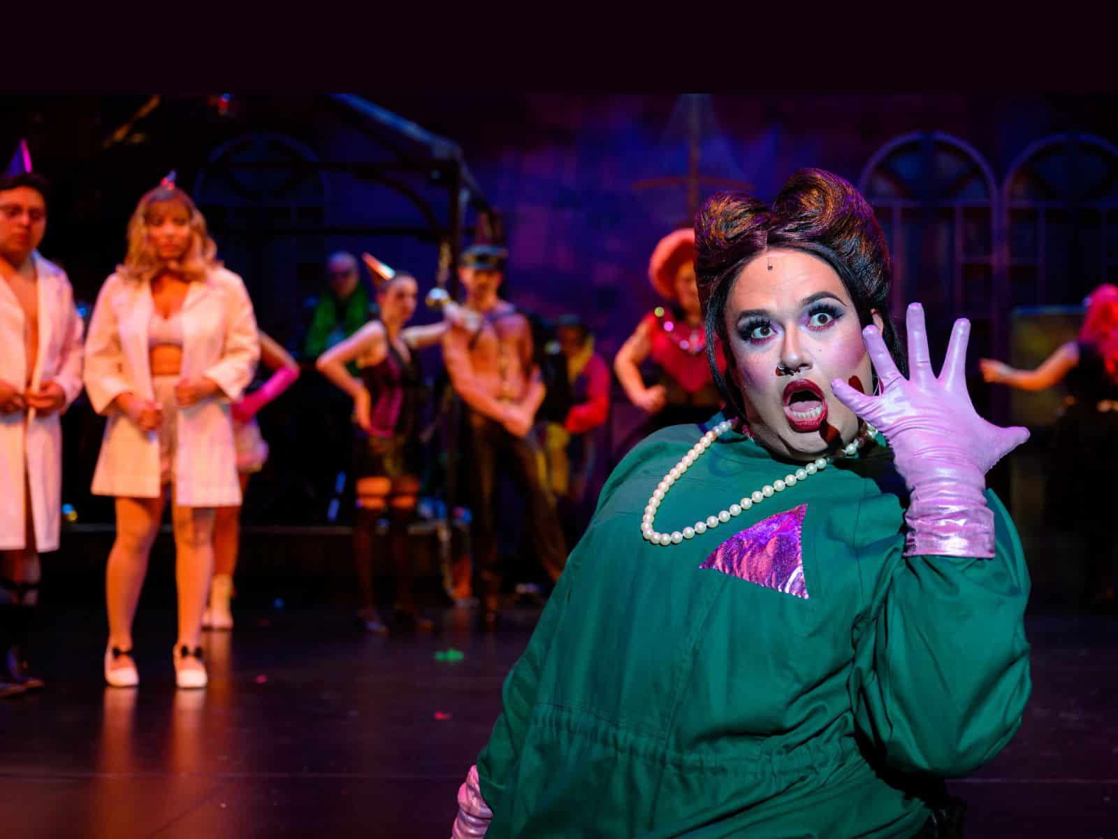 The cast is aided in their libidinous and lasciviousness by the costumes, credited to Lourdes Turnblom, Jared Foeppel, and Allie Zito. Their designs are playful, sensual, and honor the traditions of the film and the show. Special mention to ensemble member Kincade, who also provided the wig and hair design of wild and wonderful looks.