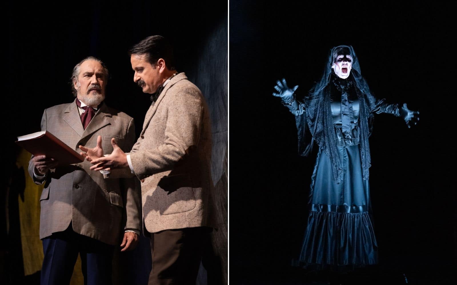 As the tale unfolds through time and space (and lots of dialogue), we learn that while the entire town is aware of and familiar with the woman’s ghostly presence, her sorrow has particular relevance to Kipps. By the end, when the devastating details are disclosed, he seems to be physically relieved as he finally completes reciting the script, but just when he seems released from the apparition’s hold on him, the Actor sees her. So, is she real? Has Kipps really been exonerated from his demons? Have we?