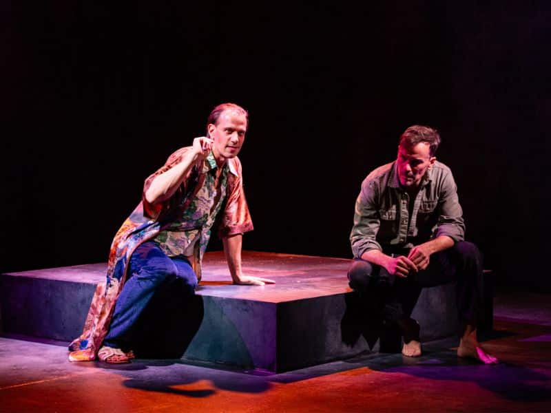 The production supports the performances through a mix of lighting and original music to mark the transition between scenes and reflect the characters’ emotional tenor. The stage is designed like a black box, the stark gray walls of the cell looming large over the actors. A square platform in the center of the stage serves as their beds and where the prisoners store their limited belongings. Wardrobe is also used to great effect, both as another visual reminder of the differences between the two men and, as it is shed during several powerful scenes, as a way to mark their growing closeness and dependence on each other.
