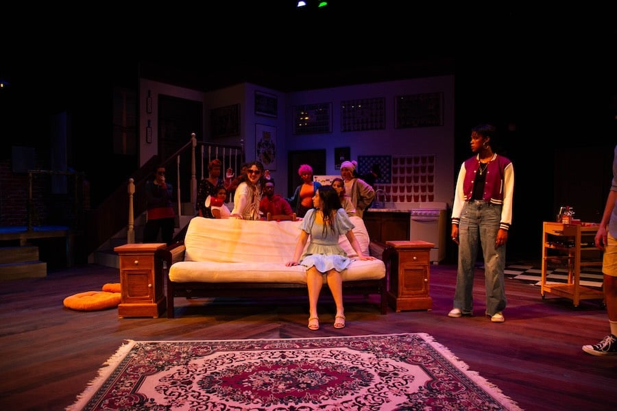 Part of the issue modern audiences run into with Shakespeare’s plays is the language, as it is not what we’re used to in the 21st century. However, this production kept the dialogue at an upbeat pace that fed into the overall energy of the cast. The lines were punchy, and the delivery was crisp, adding to the modern feel of this production. Throughout the show, the cast proved that they understood the text as they worked to convey it in a modern setting. Highlights from the cast include Alexandra Fenton as Lance, whose bold acting choices and strong commitment to the comedic value of the character kept audience members on their toes; Ali Lightfield as Julia, whose tenacity and determination had the audience rooting for her; and Alec Schneller as Proteus, whose moral dilemma and constant charisma pinpointed him from the get-go as a crucial character to the story. Overall, the cast dynamics were fun, funny, and upbeat, much like any frat house you might find.