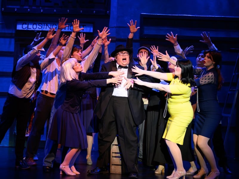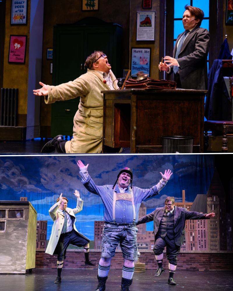 There isn’t a weak link anywhere in the cast. Yednock’s Max is, as he needs to be, bombastically larger than life, with a bit of a Zero Mostel vibe. The strength of his voice, already evident in his first-act numbers, is tested in the marathon of “Betrayed” in Act 2. He aces the test. Leo has the widest character arc in the show. Grygiel gets Leo’s initial scaredy-cat persona, his ambition, his growing self-confidence, his falling for Ulla, and his ultimate bond with Max. He displayed the vocal and movement skills needed to shine in all parts of the role.