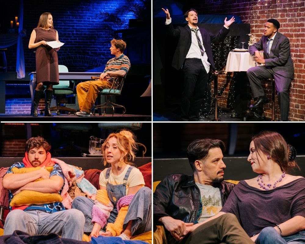 Quick scene changes are abetted by Hailey LaRoe’s kaleidoscopic lighting design and Brandon Cook’s contemporary sound design. Cindy Landrum Jacobs’s properties and set-dressing design lend each playing space authenticity. And given that several scenes play out under covers in bedrooms, Sierra Young’s sensitive intimacy direction calls for a shoutout.