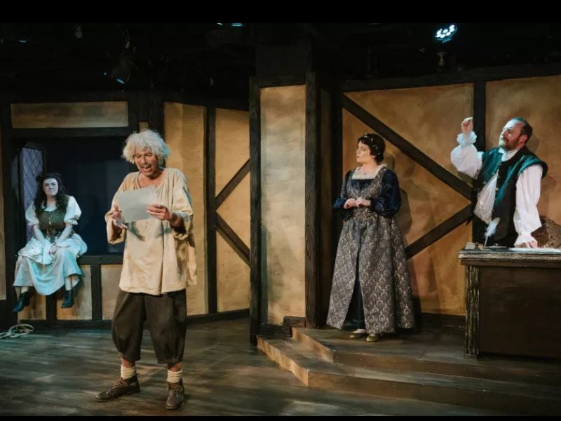 There’s a male loneliness epidemic going on in Jane Anger at Maryland Ensemble Theatre, and it’s not only because of the Plague of 1606. William Shakespeare just can’t seem to find his words, which have always been his best friends. He’s filthy rich because of them. But the journey by the Bard through a challenging time of his life, as he tries (and fails) to write his “most important” play, takes a backseat to a more topical storyline in this revenge comedy, which also plays like a classic farce and a feminist fantasy.