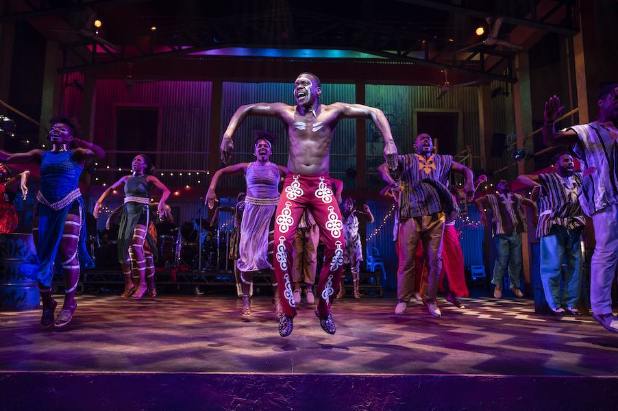 I was definitely jealous of those cabaret seats when I saw the band perched upstage on their platform. Fela! simply could not succeed without the best band, and this amazing crew is one of the driving forces of this production. The ensemble, headed up by Conductor and pianist S. Renee Clark, jammed for almost three hours, pushing out some of the funkiest Afrobeat you can imagine on a stage full of blindingly gorgeous instruments. I wasn’t the only attendee who loved dancing and singing along! Thanks to Lorenzo Sanford, Carroll Dashiell, Joe Herrera, Christopher Steele, Brent Birckhead, Leigh Pilzer, Deante Haggerty-Willis, Dokun Oke, Reginald Payne, and recent hometown Baltimore cast addition, djembe player Themba Mkhatshwa for making my night. And kudos go to Sound Designer Matt Rowe for rocking it out and making all the right tweaks! The experience of hearing this production was just as wonderful as seeing it. I can’t get the beats out of my head, so I’m making a deep dive back into my Afrobeat Spotify stations.