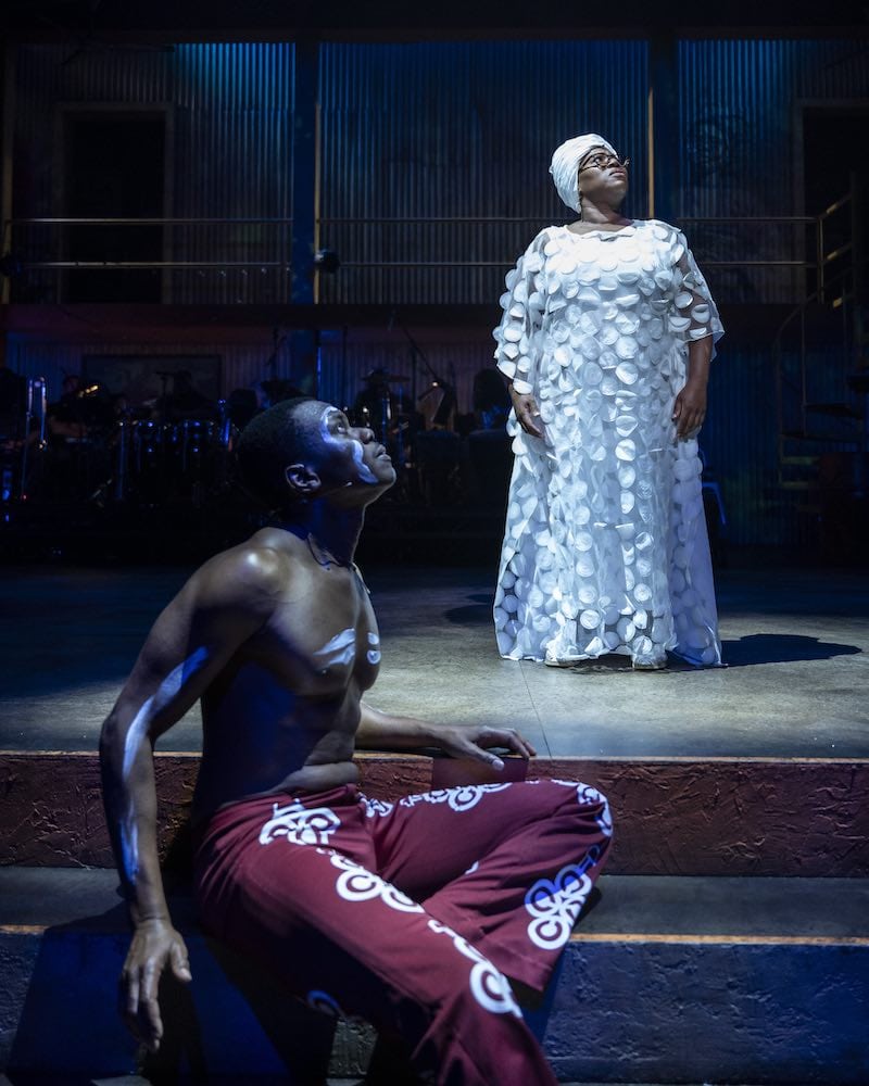 However, the deck became beyond stacked when Melody A. Betts was added to the cast as Funmilayo, Fela’s mother. She is clearly a ringer. I think the entire audience would have stayed if she said she was singing for an extra hour. Attendees were fanning themselves while she evoked Nina Simone with her honey-soaked brassy tones. Then they swooned as she took “Rain” by the reins, and her notes soared high above the clouds. People were weeping. They literally stopped the show to give her a standing ovation, which I have never seen or even heard of in all my years in theater. It’s a good thing that was close to the end of the night, because I don’t know how much more this (mostly) older audience could have actually handled.