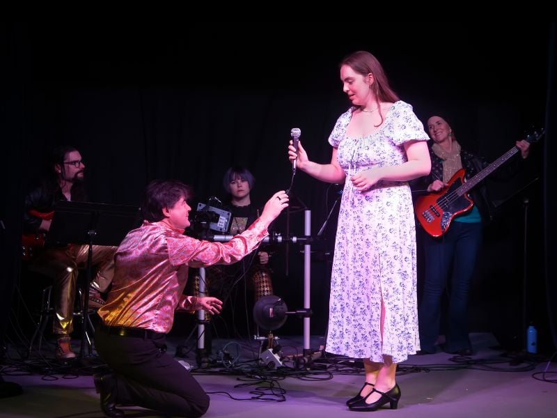Rude Mechanicals’ new adaptation of The Seagull, running through February 1 at Greenbelt Arts Center, is not the first to reimagine Chekhov’s play in modern New York. Emily Mann’s A Seagull in the Hamptons performed at Princeton’s McCarter Theater in 2008, and Thomas Bradshaw’s The Seagull/Woodstock, NY, ran Off-Broadway in 2023. Yet The Rude Mechanicals’ version is unique in its staging of the play as a rock musical. In the words of director Melissa Schick, the Rudes turn The Seagull from “theatre about theatre into a musical about music.”