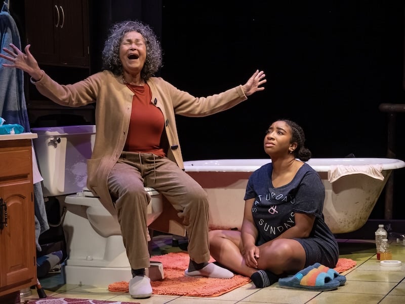 The play — which won the 2021 Susan Smith Blackburn Prize — takes us into the lives of three generations of Black women living under one roof in Flint, Michigan, in 2016. This is an ensemble piece, and all of the performers are strong and supportive of others onstage. The focus is on shared pain and support of the group.