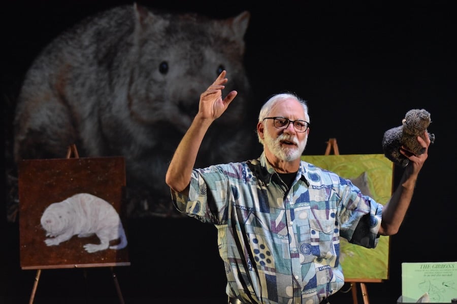 Wombat Drool, the one-man show now playing at the Dance Loft on 14th, is a production worth spending your money and time on. David S. Kessler plays K, a former employee at the National Zoo. K gives us a lecture on his experiences at the zoo. He then follows that with a talk at a rally to support bringing wombats to the zoo.
