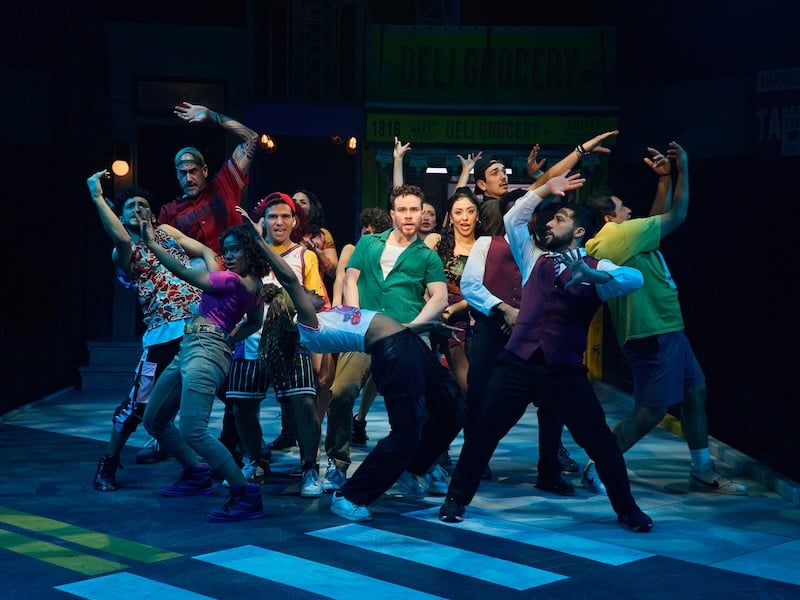 The Heights that the title of the musical In the Heights refers to is the Washington Heights neighborhood of New York City. Washington Heights is the geographical location that a large and bustling cross-section of the Latine community calls home. It was composer/lyricist Lin-Manuel Miranda’s neighborhood growing up. The title is also an apt description of the aspirational state of being that the neighbors in Miranda’s story encourage each other to maintain. Through their ever-present care and attention to each other’s needs, dreams, and almost private business, the inhabitants of Miranda’s world make it clear that here everyone is welcome. Here everyone here is family.