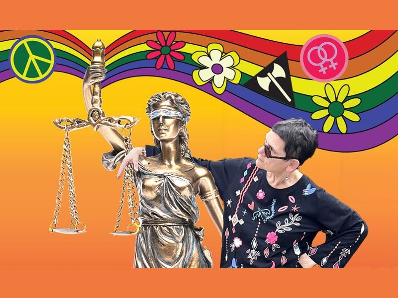 Looking for Justice spans her late ’60s college years, setting out for “Bezerkley” (Berkley, California) from New York with a best friend, and crush turned boyfriend by the time they arrive, feminism circa the ’70s, uncertainty about latent lesbian identity, and the drama and trauma over sexual harassment and sexual violence. But the essence of the show centers