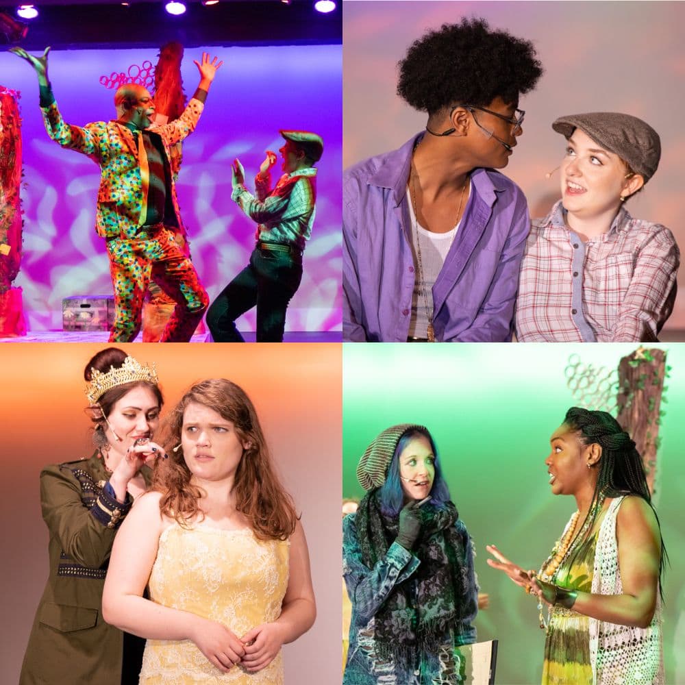 (Clockwise from top left:) Elgin Martin and Bella Heyer; Zach Rakotominiraka and Bella Heyer; Katie Barnett and Lola Akingbade; Mary Rodrigues and Morgan Vaughan in ‘As You Like It.’ Photos by Ryan Maxwell Photography.