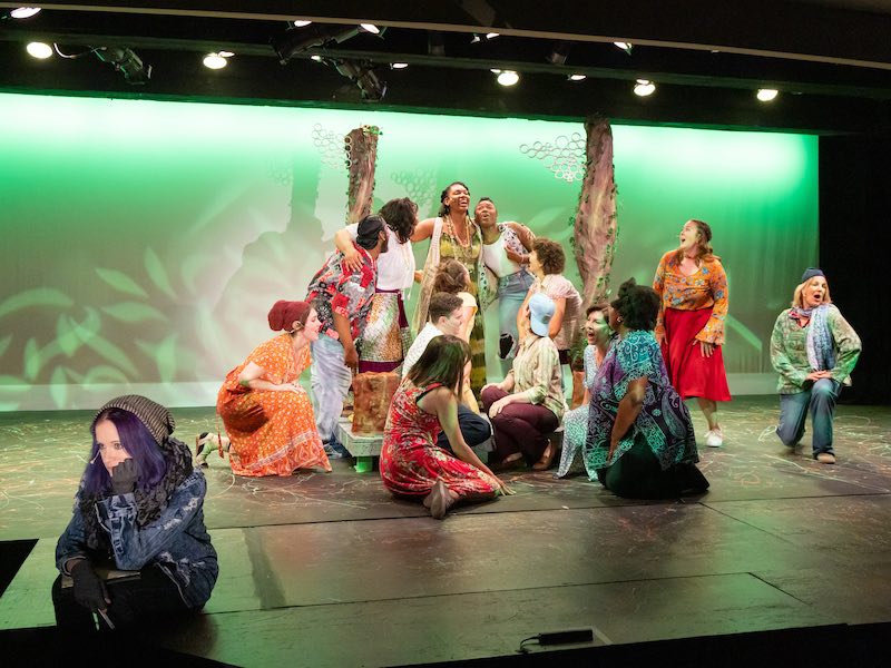 Scene from ‘As You Like It.’ (Far left:) Katie Barnett; (back row:) Mary Rodrigues, Alan Joseph, Lydia Folks, Lola Akingbade, Rhienne Redmond, Lilith Evans, Matilde Sergio, Shannon Cleary, Heather Godwin; (front semicircle:) Marcelle Robidoux, David Fine, Yael Schoenbaum, Lizzie Bartlett Holman, Laura Paez, Lilith Evans. Photo by Ryan Maxwell Photography.