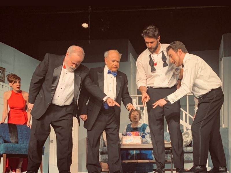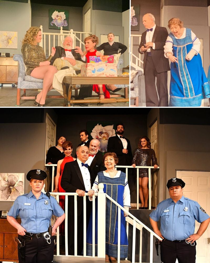 Any faltering in this production is barely noticeable. In moments, the men’s tuxedos and tuxedo shirts don’t appear to fit as well as they should, particularly at the beginning of the night before the unfolding insanity — especially in the case of Glenn, who as a womanizing politician type would likely be fitted meticulously.