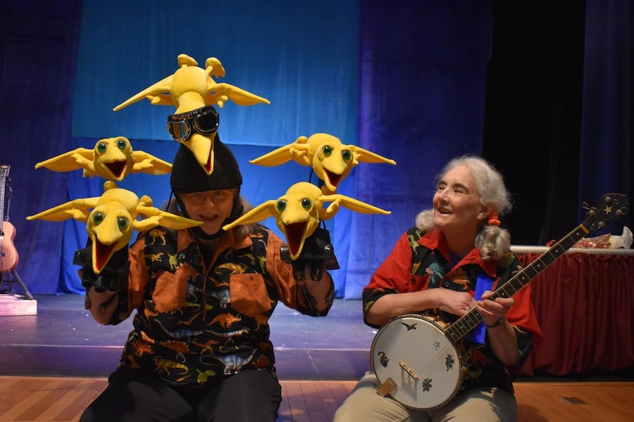 Michele Valeri and Ingrid Crepeau, the singer-songwriter and puppeteering duo behind DinoRock, have been entertaining the DC area for 40 years. Dinosaur Babies, their show at the Puppet Co. at Glen Echo Park, will be the last of their final public performances, giving this run a particular air of significance for these masters of their craft.