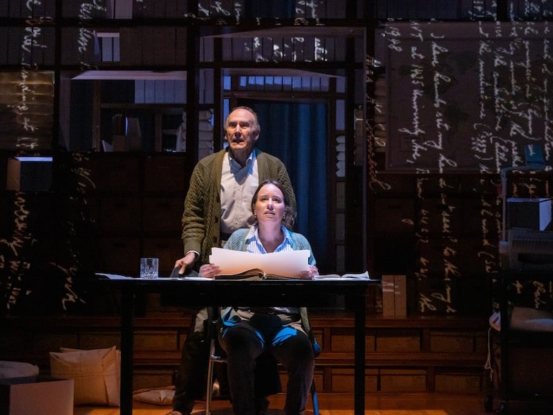 The regional premiere of this absorbing play, directed by Elizabeth Dinkova at Theatre J, takes place in set designer Sarah Beth Hall’s wonderfully dusty old archives, replete with faded volumes and plump packets of documents. We understand that these nondescript records contain information that no one has bothered to look at for decades. We learn that a single misfiled folder or a mistakenly recorded address can throw a passionate researcher right off the trail.