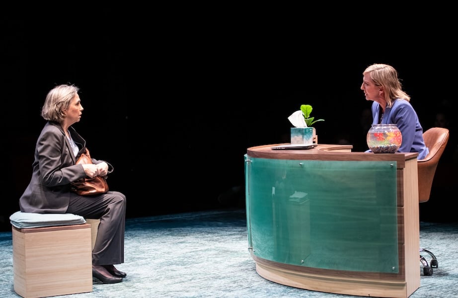 Over 90 minutes, Norris morphs from The Librarian to The Manager (where The Mother is employed) and then into The Editor (who wants to reissue The Mother’s disavowed book), each time etching her character with crystalline precision and brilliantly shifting body language. Twyford remains The Mother, yet her emotions and postures change with great sensitivity as she encounters Norris’ succession of personas, each denoting a difficult passage in The Mother’s own life.