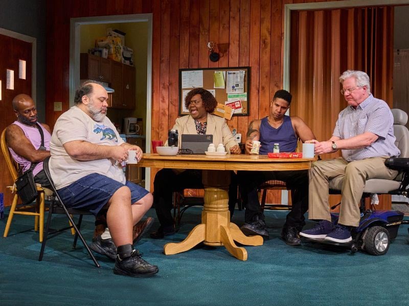 They also vary in their self-evaluations of their crimes. The elderly Fred (Dan Daily), a benign former piano teacher who genuinely regrets having abused his students, was crippled by a prison mate sporting steel-toed boots. The glad-handing Gio (Jaysen Wright) discounts his trespasses as strictly statutory and projects a cockeyed optimism about his imagined future in business. Dee (Stephen Conrad Moore), a one-time performer in traveling Broadway musicals, brags that his underage male partner sent him love letters for six years into his incarceration. He busies himself taking care of Fred and managing the meager household. Felix (Richard Ruiz Henry), who is outed by Ivy for having tried to contact the daughter he raped, suffers profoundly, and mostly in tortured silence.