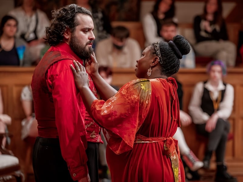 Anchoring our journey is the royal couple of Sicilia, Leontes — the bold, forceful Jordan Friend — and his queen Hermione — played with grace and profound emotion by Raven Lorraine. When Leontes suspects his pregnant wife has been sleeping with his best friend, Bohemian King Polixenes (the cool, measured L James), and that her baby-to-be might not be his own, Leontes erupts into a jealous rage of the kind we know too well.