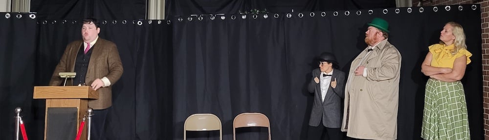 If you are bored and need some excitement, Richard Hannay has your cure. Head out to one of the remaining UpStage Artists presentations of The 39 Steps. The play is two hours of silly, slapstick humor disguised as a murder mystery and international spy thriller.