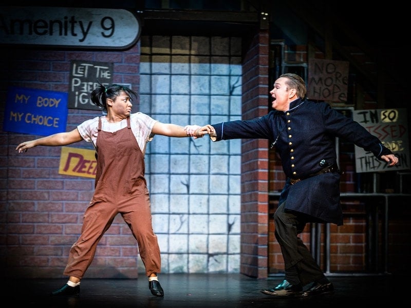 Ryan Power’s Officer Lockstock served as the perfect narrator alongside Barber’s Little Sally. With fourth-wall-breaking aplomb, these two were a match made in heaven (or Urinetown). Their camaraderie was palpable, helping us to better understand why the plucky Little Sally would have befriended someone like Lockstock in the first place. Not to mention, Power holds a power note in this production that is sure to thrill.