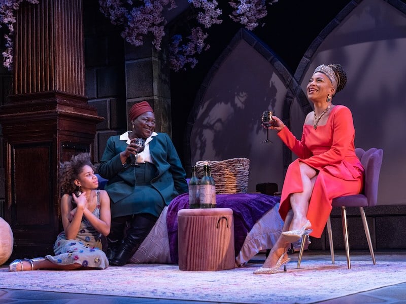 Ophelia is, of course, answering Hamlet’s famous soliloquy “To be, or not to be…” In this case, the Prince of Demark is unseen and unheard since the women — Ophelia (Sabrina Lynne Sawyer), Hamlet’s mother, Queen Gertrude (Oneika Phillips), and the newly imagined lady’s maid to Ophelia, Anna (Burgess Byrd) — take center stage.