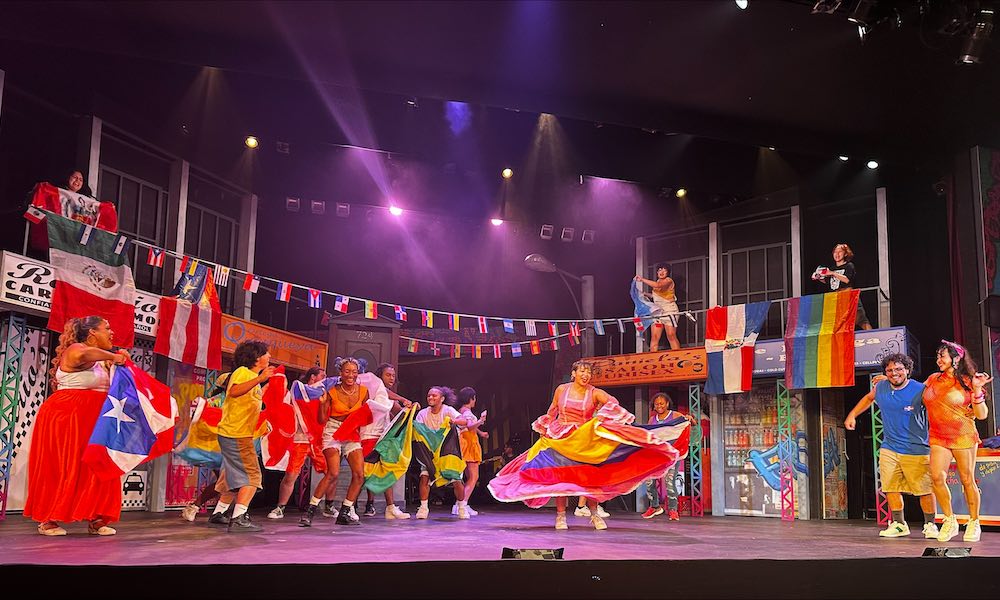 Heartache and joy live in the Heights too with Nathan Campbell as Benny and Daniela Lock as Nina, who tenderly unite against her parent’s wishes, and with Natalia Huitz Corvoisier’s touching performance as Abuela Claudia, as she shares in her notes a love letter to her grandmothers who emigrated to the U.S. from Guatemala and Columbia. The pushcart salesperson, a true New York City fixture, selling tropical ice on these hot streets, is played to the hilt with high spirits by Sam Perkins.