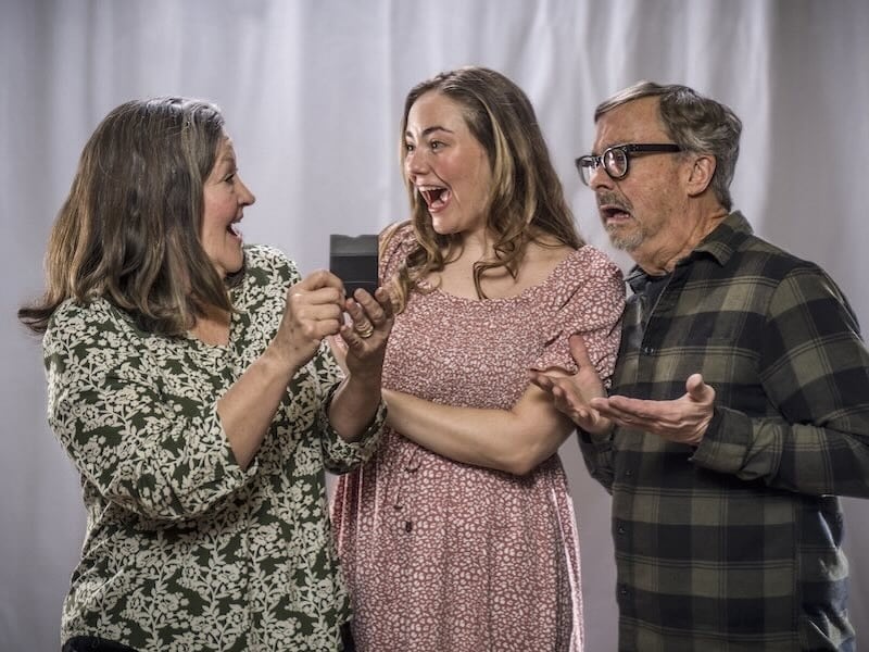 Rick Estberg plays grandfather-to-be Luis with enthusiasm. Initially uncomfortable with Maria (Mary MacLeod) and Claudia’s (Vanessa Van Note) conversations around Claudia’s pregnancy, reading magazines while they talk and interjecting comments, he soon eagerly shares his newfound knowledge as he develops the Vasquez Device for helping with childbirth. Showing it to pregnant mothers, he weaves scenarios in which they must get the baby out quickly, revealing how the Device will save lives.