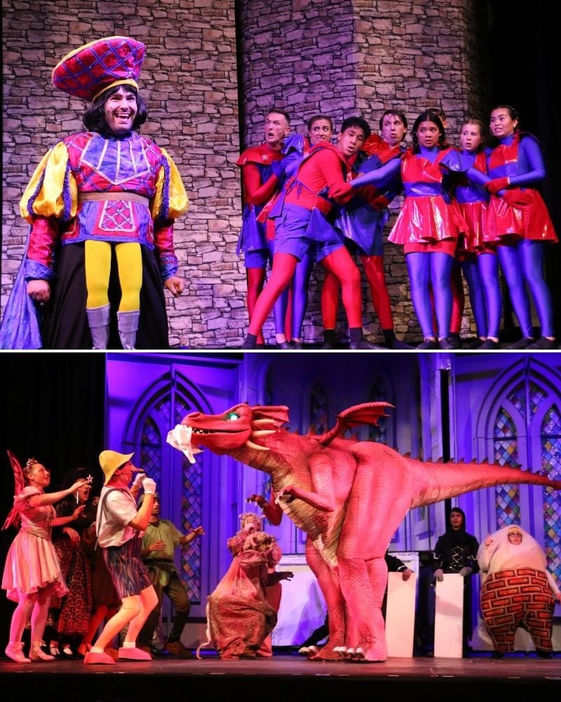 The ensemble is nothing short of outstanding — a vibrant, ever-shifting cast of fairytale misfits who bring color, chaos, and cohesion to every corner of the stage. Whether playing townspeople, tap-dancing rats, Duloc dancers, blind mice, or storybook creatures, each performer creates a rich and immersive world. The fairytale creatures’ “Freak Flag” was a showstopper with explosive energy, vocal nuance, dynamic choreography, and strong solos by Gingy (Danielle Serrano-Bremer) and Humpty Dumpty (Rachel Edwards). Tessier, Zavadowski, and Constable’s shared belief in the power of ensemble storytelling is evident, proving to the audience that even in a show about ogres and dragons, it takes a whole swamp to tell a great story.