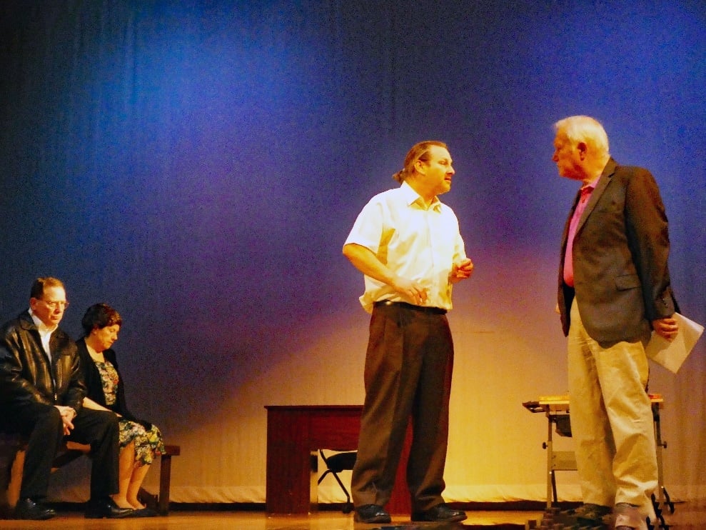 Director Harry Kantrovich set out to adapt Shoah from documentary to stage play back in January 2022, premiering the work at Fauquier Community Theater. That production was reviewed in DCTA by Aimée O’Grady. In this subsequent Castaways Theatre production, Kantrovich recounts the challenges creating this staging from obtaining transcription rights to the documentary, to temporal compression, to appropriate visual transitions, all while maintaining the authenticity of the source material. Kantrovich correctly strikes a balance between honoring the original documentary’s essence and creating a compelling theatrical experience.