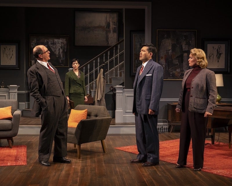 Daniel Ettinger’s mid-century modern set design, David Burduck’s finely tailored suits and women’s dress designs, Megumi Katayama’s sound design and score, Denise O’Brien’s wigs, and Harold F. Burgess II’s lighting design together recreate this fashionable time period with sharp, vintage details. Fight director Lewis Shaw has choreographed a gripping murder scene and Gary Logan served as dialect coach for the British and transatlantic accents.