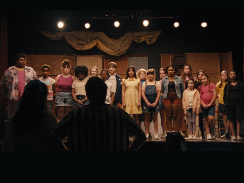 Directed by Molly Gordon and Nick Lieberman in their directorial debuts, Theater Camp, which had its world premiere at the Sundance Film Festival in January, further develops the 2020 short film of the same name written by Gordon, Lieberman, Ben Platt, and Noah Galvin. Shot mockumentary style, the film follows the teaching artists and their talented students at Camp AndirondACTS as they attempt to save their underdog theater from Camp Lakeside, the rival rich-kid camp encroaching into their territory.