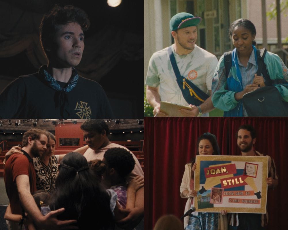 The climactic scene of the film stages Joan, Still, the musical bio of the founder. Including Joan’s story as a young immigrant who couldn’t read (with allusions to Fiddler on the Roof), her Studio 54 decadence (youngsters disco-dancing while a papier-mâché nose huffs a line of coke created from white feather boas), and other surprising biographical details, the inappropriate musical also includes an incredibly touching number. Does the musical save the camp? You do know how magic works, right?