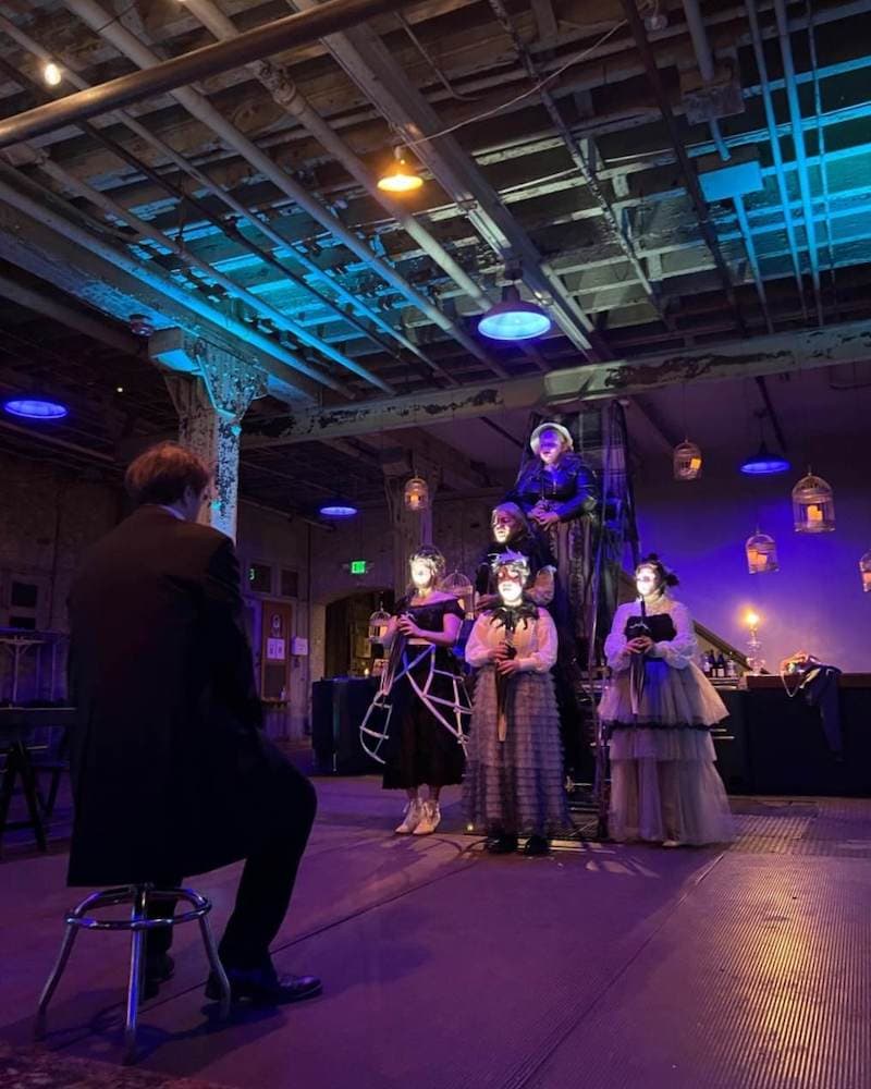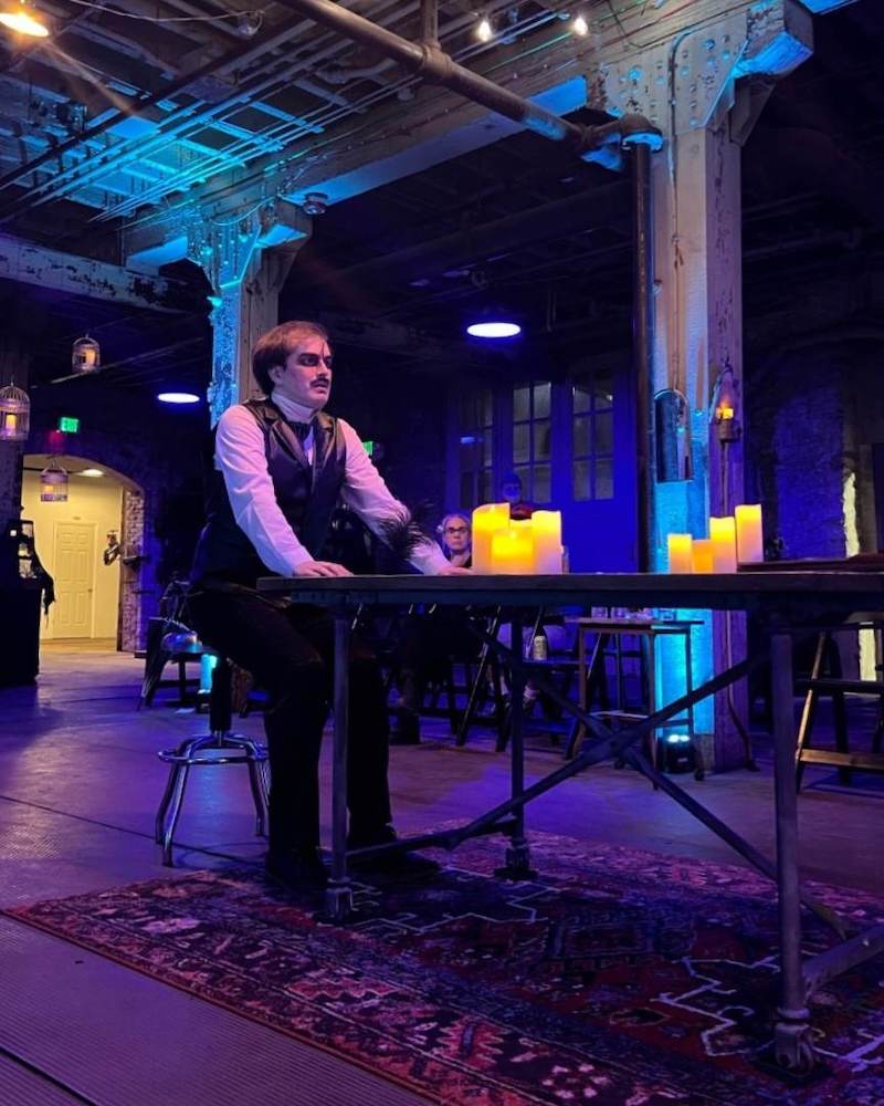 Directed by Stillpointe Theatre’s Ryan Haase, choreographed by Amanda Rife, with musical direction by Ben Shaver, Nevermore is a fantastical and fun study of the great American gothic writer with dedicated performances and a wonderfully ghastly design. It’s also a musical biopic very heavy-handed on the psychoanalytic treatment of its subject.