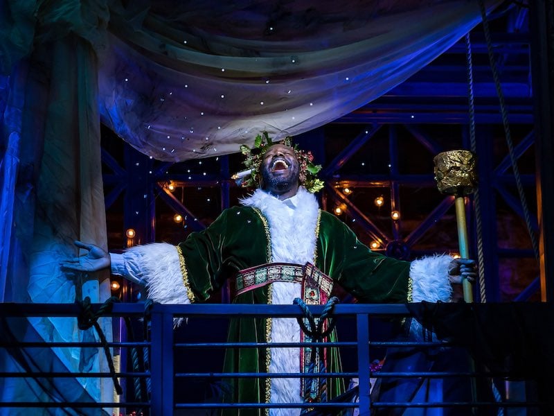 Chesapeake Shakespeare Company’s production ends, of course, with Tiny Tim’s cheer, “God bless us, everyone,” but it is the Ghost of Christmas Present’s greeting “Come in, come in, and know me better man!” that defines this production — full of cheer, curiosity, and a desire to learn and care more about our neighbors.