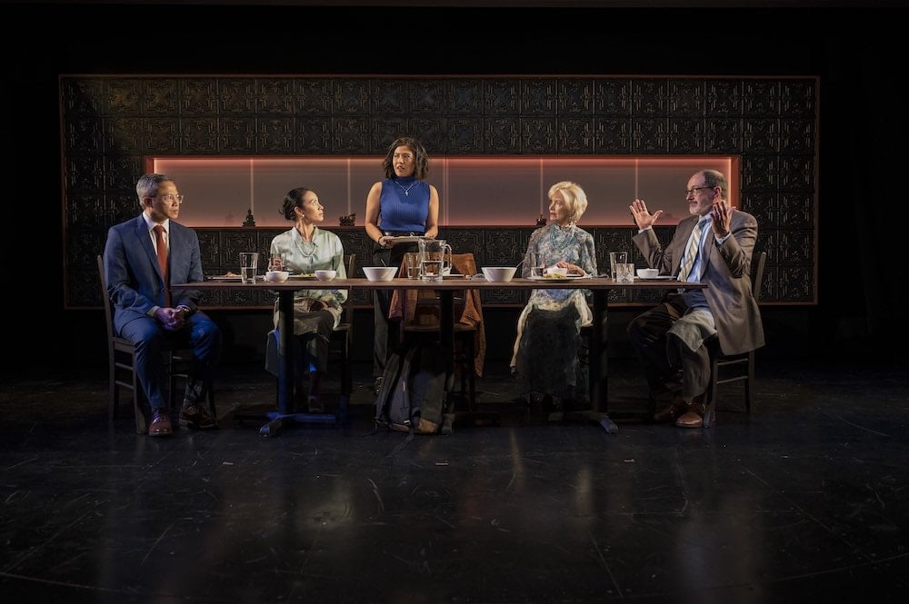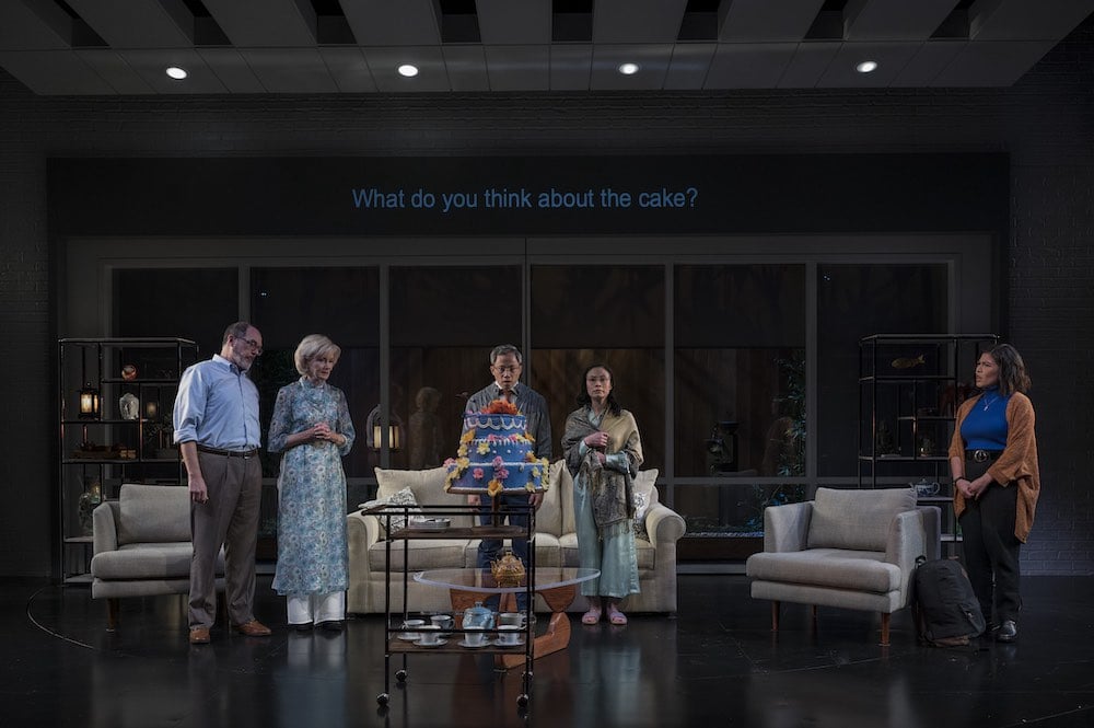 The world premiere of DMV-based performer and playwright Tuyết Thị Phạm’s Dinner and Cake is a powerful play that sets up a familiar context—in-laws from different cultural backgrounds engaged in an awkward dinner together—with a quietly devastating denouement. Directed by Everyman Theatre’s associate artistic director Paige Hernandez, the family drama is a character study in miscommunication, the things best left unsaid, and feelings of wishing to belong. It’s also an understated satire that discusses colonialism, capitalism, cultural appropriation, white saviorism, and white feminism through stilted conversations.