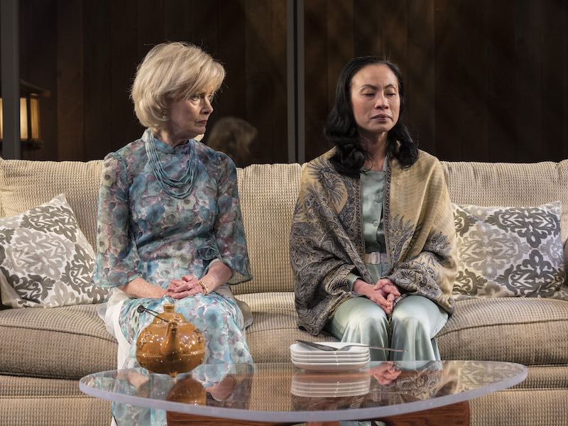 In the opening scenes, Mỹlinh, played with warmth, sarcastic asides, and occasional exasperation by Carolina Đỗ, meets Joyce and Murray Drummings at their home to await the arrival of the Trầns. While the Drummings lived in various Asian countries for over twenty years due to Murray’s diplomatic work, they demonstrate that cultural connection does not translate to understanding. For example, they lived in Vietnam for over three years and never learned to speak a word. This is why they rely on the Vietnamese American Mỹlinh to serve as their translator. The Drummings’ need to be well-liked by the Trầns borders on pathological.