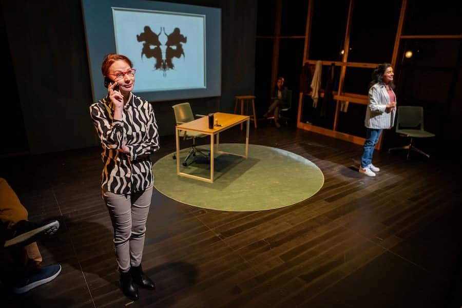 For playwright Lisa Loomer, Side Effects May Include…, now playing as part of the Contemporary American Theater Festival (CATF), is a deeply personal project. In 2019, just as the COVID epidemic was about to begin, Loomer’s son developed a little known, but devastating, condition, akathisia. In 2021, Loomer wrote a lengthy article about her son’s experience with the condition and the infuriating struggle she had with the medical system in trying to get help for him. The play hews closely to the story she wrote.