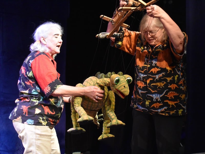 Michele Valeri and Ingrid Crepeau, the singer-songwriter and puppeteering duo behind DinoRock, have been entertaining the DC area for 40 years. Dinosaur Babies, their show at the Puppet Co. at Glen Echo Park, will be the last of their final public performances, giving this run a particular air of significance for these masters of their craft.