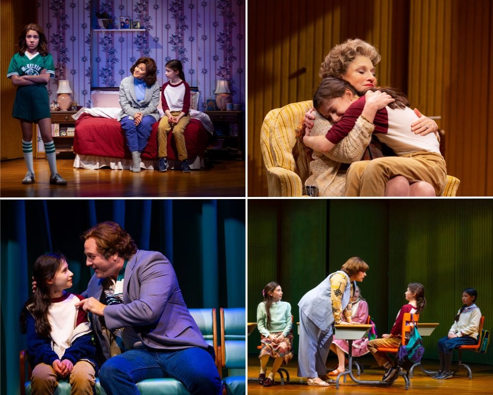 The imp-like, irresistible Aria Kane as Sarah introduces herself at her new school (“Hi, My Name Is Sarah”) with a riptide of verboten language that passed for ordinary discourse at home. (On opening night, one could only wish she had been better miked so we could make out every risqué word.) Shamed by her teacher Mrs. Dembo (Alysha Umphress) and instantly reviled by her cliquish fifth-grade classmates, Sarah stands apart — carelessly dressed, potty-mouthed and undeniably “Jew-y.” Finally, she gains probational status among the “in-girls” — Abby (Emerson Holt Lacayo), Amy (Elin Joy Seiler), and Ally (Alina Santos) — only to be cast out again when they discover her shameful secret.